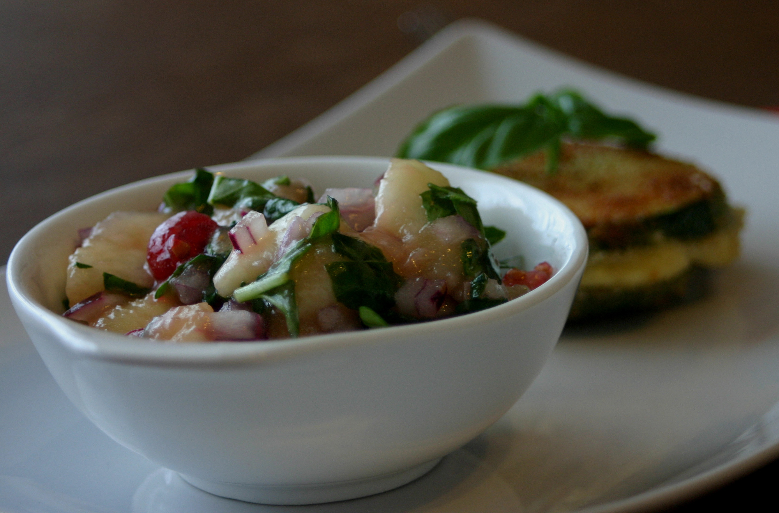 So weit, so gut. Spannend wird Leben und Essen aber ja meist erst durch Gegensätze. Die Pfirsichsalsa ist so ein Versuch, etwas Spannung ins Abendessen zu bekommen – und er hat es in sich. Wer es scharf, fruchtig und dazu noch sauer mag, für den wird sich das Nachmachen lohnen. Es ist zugegeben eine etwas gewagtere Kombination und nicht ganz alltäglich, aber gerade zu den deftig bodenständigen Zucchiniplätzchen ein toller frischer Gegenpol. Oder was meint ihr? Zu viel experimentiert?
