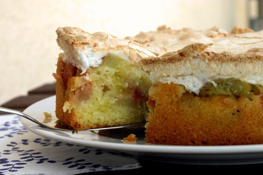 Gut, dass es Herr Lieblingsmahl gibt. Der bestand nämlich jetzt zu Recht darauf, dass nun endlich – fast ein Jahr nach dem heimischen Rhabarberkuchen-Rezept von Frau Lieblingsmahl – auch seine Stammeslinie zum Zuge kommt. Dieses Familienrezept ist ebenfalls eine Variation mit Baiser, allerdings bettet sich der Rhabarber nicht auf einen Mürbeteig, sondern auf einen Rührteig.