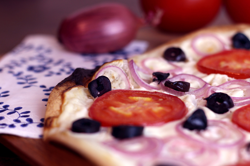 Zwar haben wir beim Boden dieses Mal auf ein Supermarktprodukt gesetzt, wer sich für einen selbst gemachten Teig interessiert, der kann aber gerne einmal hier schauen. Ob selbst gemacht oder gekauft: Die mediterrane Kombination aus Oliven, Tomaten, roten Zwiebeln und Kräutern ist aber auf jeden Fall ein Genuss!