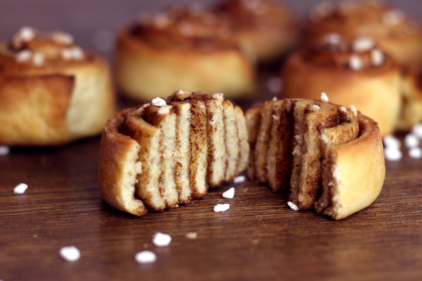 • Kanelbullar mit Sojamilch bestreichen und mit Hagelzucker krönen