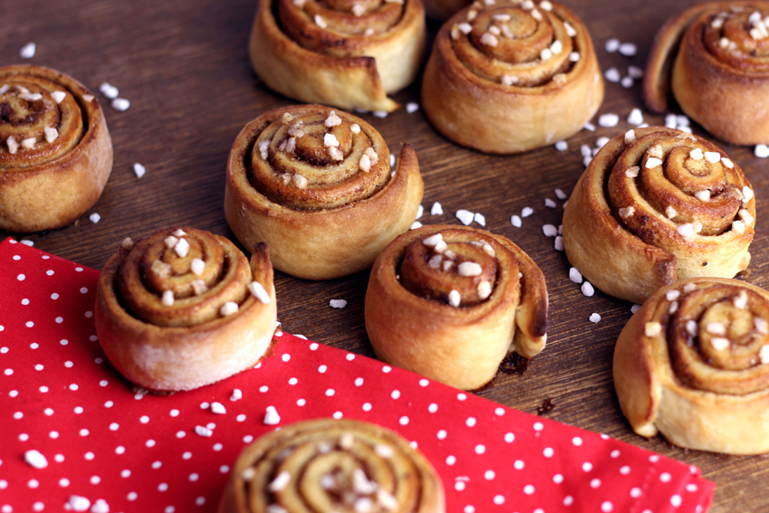 Vegane Kanelbullar (Schwedische Zimtschnecken)Landeten letztes Jahr selbst gemachte Berliner erst im Ofen und dann in unseren Bäuchen, gibt es dieses Jahr vegane Kanelbullar mit Hagelzucker. Die schwedischen Zimtschnecken schmecken besonders skandinavisch durch den Kardamom, der zusammen mit dem Zimt Konfetti in die Küche bringt.