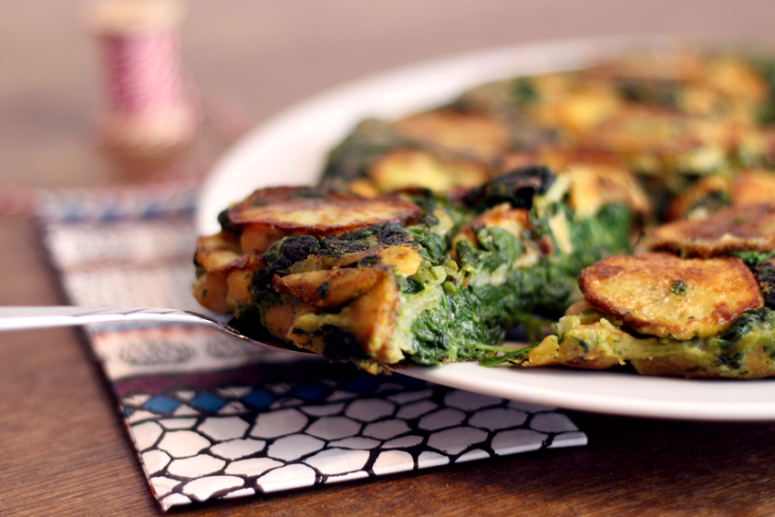 spanische Tortilla vegan Kichererbsen SpinatWir lieben unsere Alltagsgerichte, die schnell auf dem Teller landen und bei denen wir wissen, dass sie gelingen. Doch manchmal soll ein frischer Duft in der Küche wehen. spanische Tortilla vegan Kichererbsen SpinatDieses Mal haben wir uns von Gonzalo Barós „Vegan Spanien“ inspirieren lassen. Mit einer ordentlichen Portion Spinat und ganz ohne Ei ist diese Variante der Spanischen Tortilla nicht nur grün, sondern auch vegan!