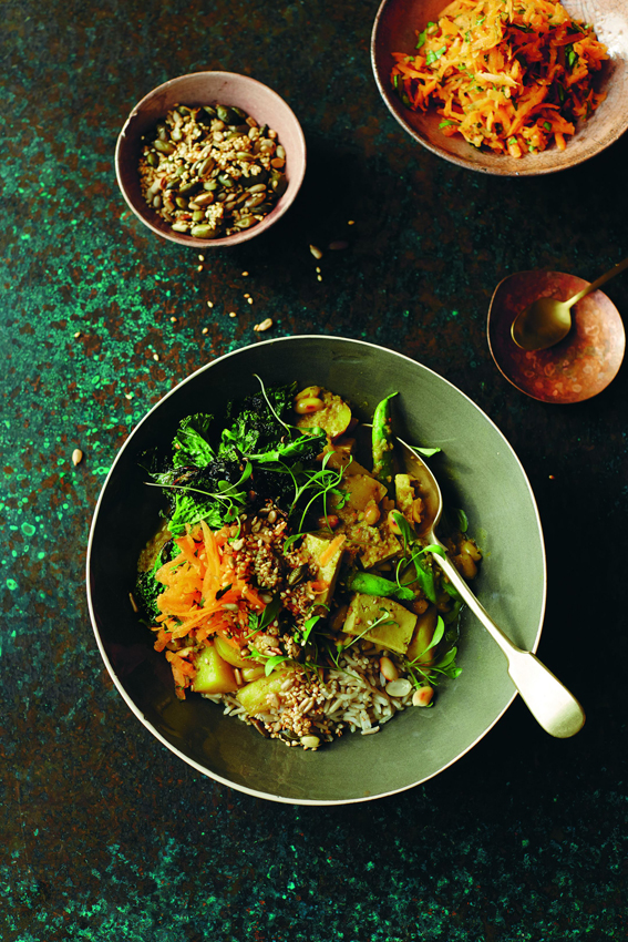 Striktes Low Carb, Superfoods oder sonstige Ernährungskulte werden nicht gepflegt, was nicht bedeutet, dass auf Chia-Samen, Hülsenfrüchte oder Nüsse verzichtet wird. Gerichte wie eine Avocado-Bohnen-Bowl, selbstgemachter Kichererbsentofu, Champignon-Cashew-Pizza oder Süßkartoffel-Ricotta-Gnocchi mit Mandelpesto geben Einblick in Anna Jones’ gesunde und junge Küche. Ob Samosas, Quesadillas mit weißen Bohnen oder knuspriger Zitronenreis mit Sesam und Pistazien: Die Gewürzkombinationen begeistern dabei über alle Ländergrenzen hinweg. Auch vegane Rezepte finden sich zuhauf im Buch und wirken nie als Verzicht, sondern immer als Genuss.