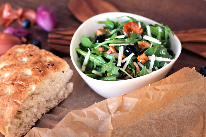 Das gilt auch für die heiß ersehnten Pfifferlinge, die nach ihrem langen Sandbad sorgfältig in der heimischen Küche gebürstet werden wollen. Kombiniert mit ein paar fröhlich kullernden Blaubeeren und knackigem Rucola, ist der perfekte Sommersalat fertig!