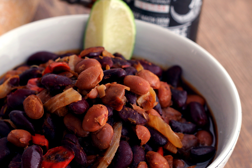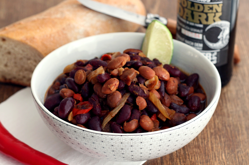 Herr Lieblingsmahl fastet: kein Bier, kein Wein und auch nichts Hochprozentiges während der Fastenzeit. Doch ein guter Vorsatz ist immer nur so gut wie sein bestes Schlupfloch. Und der Alkohol verkocht bei den Drunken Beans ohnehin (fast) ganz. Fastenehrenwort!