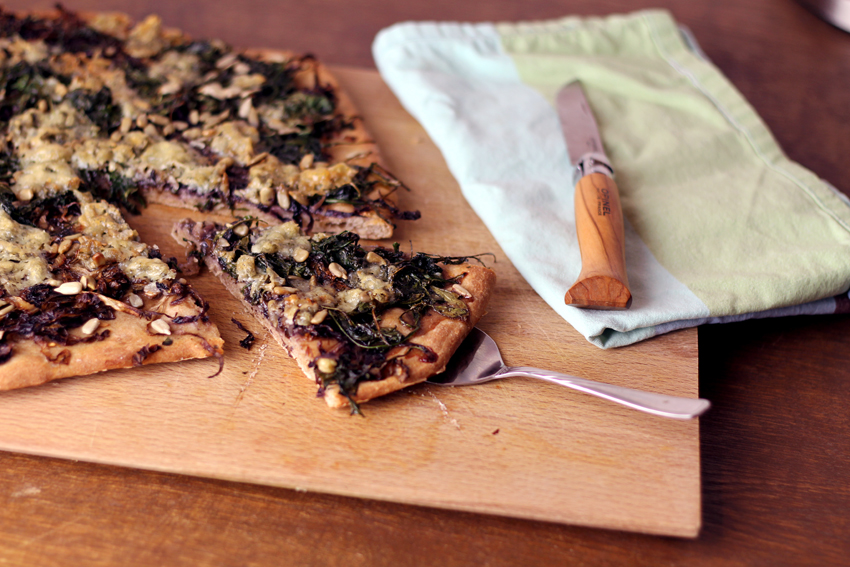 Für Salatfans haben wir ein tolles Winterrezept entdeckt: Packt den Salat einfach auf einen (selbst gemachten) Fladen, bröckelt etwas Gorgonzola darüber und freut euch auf einen wärmenden Winter-»Salat«.