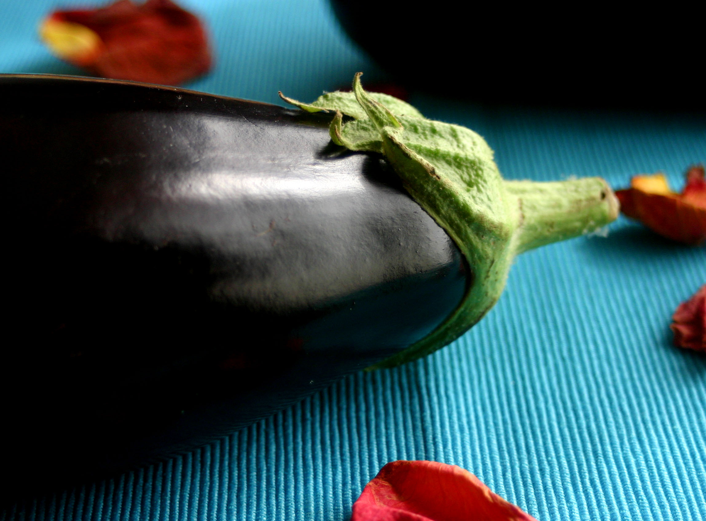 Auberginen mit einer Gabel mehrfach einstechen und im Ofen auf der oberen Schiene bei 250°C etwa 40 Minuten grillen.
